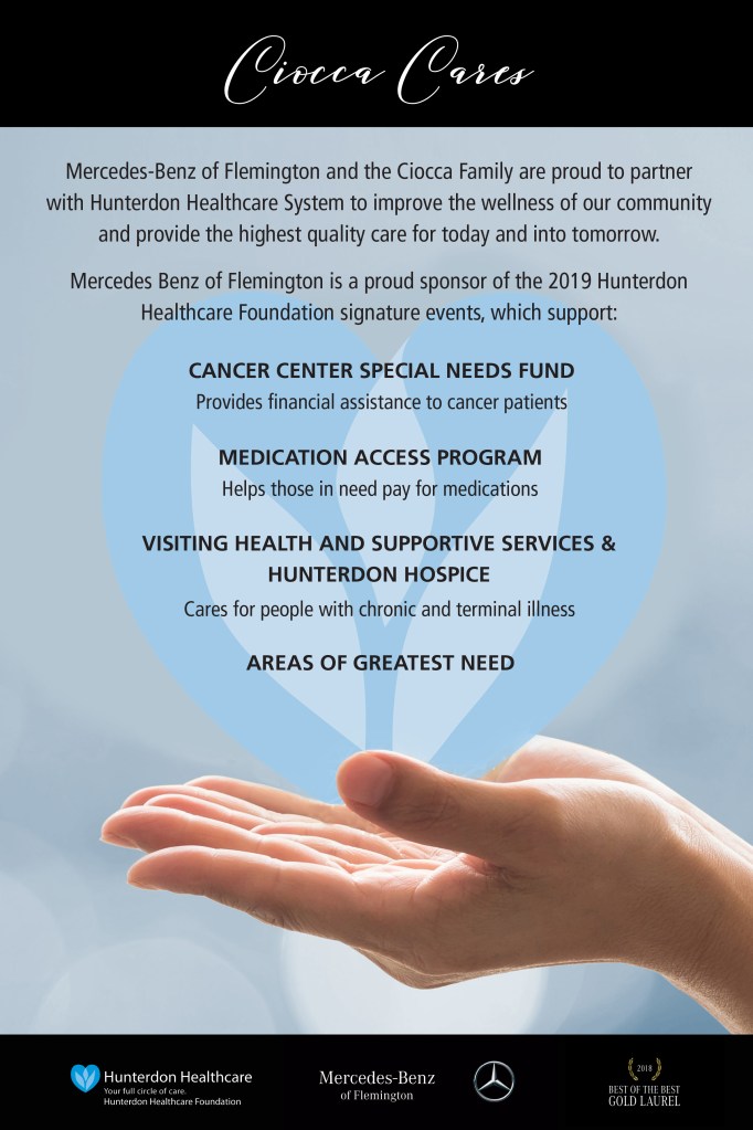 Hunterdon Healthcare Foundation poster for Mercedes dealership promoting partnership and upcoming eventsArt Attack Paint Studio brochures